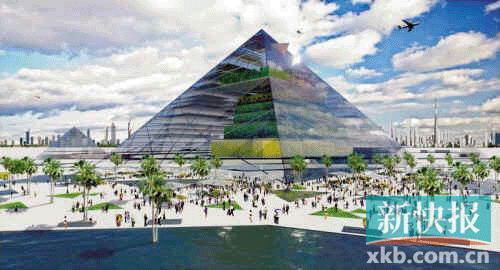 面向未来的"金字塔垂直农场"由美国迪克森·代斯波米亚教授和埃里克·艾林森教授联手设计。设计师规划将金字塔农场建成一个完整的生态系统,回收物可以用于养鱼和饲养家禽。