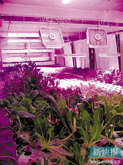 "垂直农场"里的植物不用阳光,而是用LED灯光来进行光合作用。