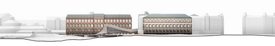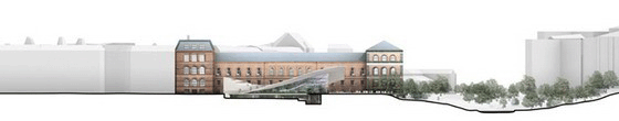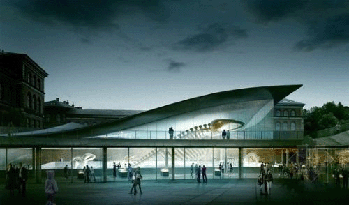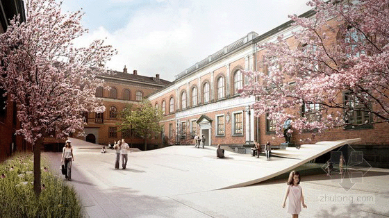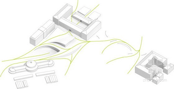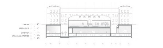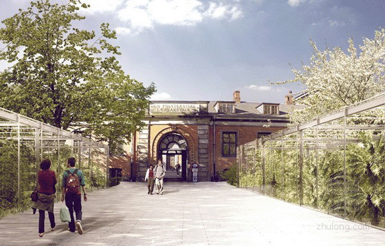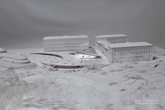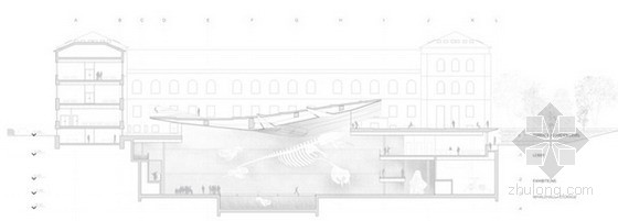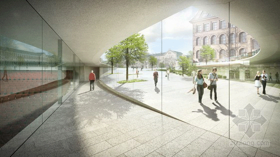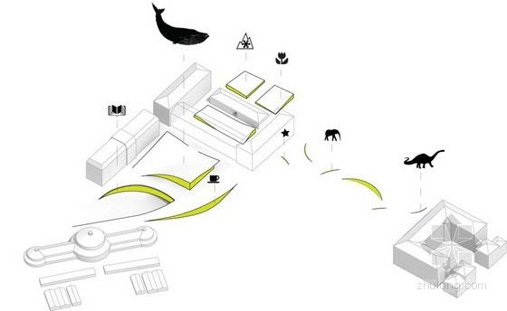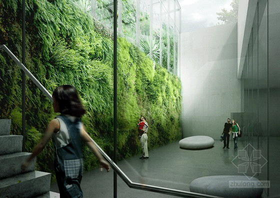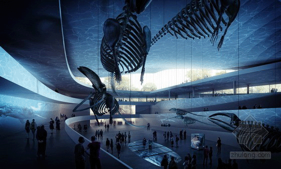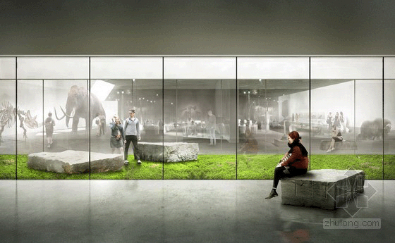 这是由隈研吾建筑都市设计事务所参与设计的自然历史博物馆竞赛项目方案,设计师将其重新定义为自然历史花园,通过周围的植物花园创造自然和历史的融合。参观的体验在达到博物馆建筑之前已经开始,因为巨大的薄薄的混凝土盖顶向外延伸,为人们展示出惊人的化石展品,将游客带入彻底的历史体验当中。绿色的成分贯穿整个项目,创造出绿色墙壁围绕的庭院,外部小山下沉到地下,为人们提供巨大的景观背景。博物馆与花园之间的界限已经模糊,它们之间相互补充,共同形成平静的整体。落地的玻璃视觉上联系展品和室外空间,同时又引入自然光于室内空间。