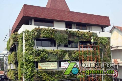 印尼绿墙的办公室是雅加达几个利用垂直绿化系统作为地面有限的水平空间的一种替代的的建筑物和房屋之一。