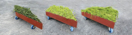 这是一种现代花园,人们可以通过将多个菱形的花盆拼接在一起形成整个造型独特的花园。每一个菱形模块底部都安装有轮子,模块呈扁平的菱形,方便多个拼接在一起,满足了人们对几何图形和自然花园的喜爱。一组花盆共有21个,分三种不同的版本,用户可以灵活地使用这些花盆拼成不同图案和形状的花园,甚至可以形成独特的屋顶绿植区。