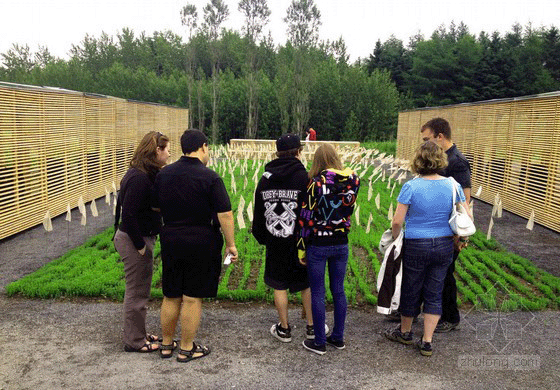 风,是大自然中具有神秘能量的存在,人们能通过其他事物的变化和声音感知它的存在。而居住在魁北克的农民用亚麻编织成的花结向人们展示这种神奇的事物,他们用风来表现设计。这个景观同时也体现了具有当地特色的亚麻作物。花园四周是“风墙”,里面安装有定式风扇,花园中央种植着亚麻作物。植物生长初期,花园里有亚麻纤维制成的小旗,通过摆动告知人们风向和风力,同时展示亚麻的价值。随着时间推移,田地里的作物长高,作物、风与访客之间形成有趣的关系。在这个花园里,风作为设计的主角向人们展示了它独有的魅力。