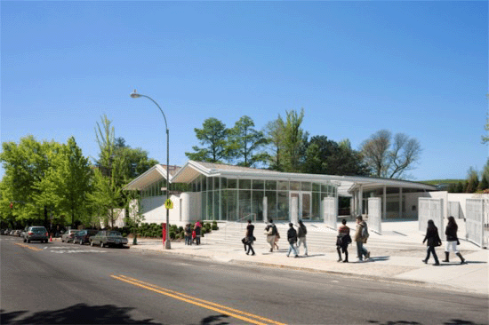 两万平方英尺(约合1858平方米)的游客中心被设计成了城市与布鲁克林植物园(BBG)之间的交界处,从街边林立的钢筋水泥丛林转换为植物园内赏心悦目的景观。游客可从华盛顿大道经过一座弯曲的玻璃格架进入植物园,然后才能进入主要园区,譬如日式山水庭园区和樱花艺术中心。