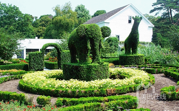 第一个修剪花园始于罗马,在16世纪修剪花园成为欧洲远景设计的一个潮流。而在美国的这个“绿色动物花园”可谓是最古老的修剪花园。
