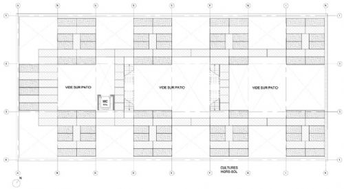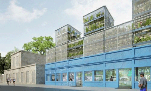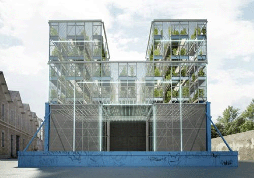 法国SOA及Holdup两家设计事务所联手设计了一个文化与农业结合的项目,音乐、教育、艺术活动在城市垂直农场的自然花卉中展开。项目位于Neil军营原址内,一层包括展览空间、剧场、画廊服务区,其上是叠加的轻质钢模块结构,容纳了”盘桓“在项目上方的种植文化。