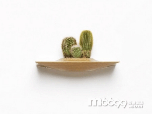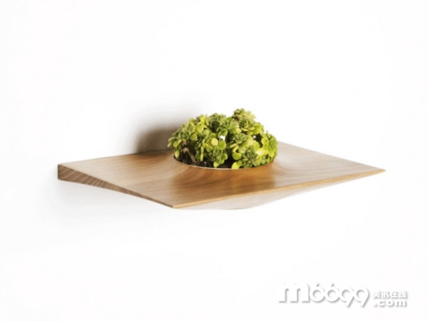 在对肉质植物护理方法的研究过程中,设计师使用雕刻机设计了这个像豆荚一样的植物景观。这些植物景观垂直悬挂,可以进行多角度的展示,每个豆荚都得以完美的展示。