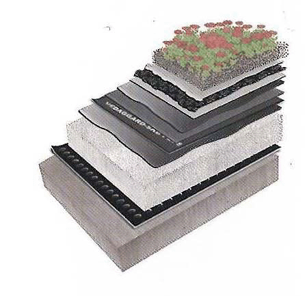 威达种植屋面系统采用具有特殊铜离子胎基的屋里根阻卷材,可以有效的阻止植物根系向下生长,防止植物根系穿透防水层,从而破坏建筑保温系统。破坏结构安全,危害建筑物的使用寿命。另外,对于特殊的屋面系统。例如轻型屋面,威达种植屋面采用了特殊的材料以适应承重。