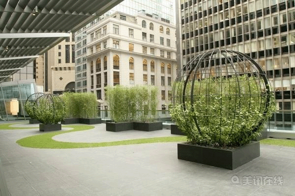 在西边并排种植了六排竹子像是回归到了多伦多市郊迷人的风景里。Arabella从中国传统的屏风设计获得灵感,创造出一面包围着花园南边的黑漆屏风,在嘈杂的大都市中营造出一种水边宁静、私密的空间,给人以心灵上的慰藉。这个屋顶花园是该地标性建筑的一个组成部分。