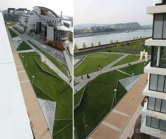 场地概况该项目位于多瑙河东岸布达佩斯桥东南角,主建筑连接着早先建成的市中心,是该区域内所有新建住宅和办公楼群中最晚落成的建筑。该项目中的花园作为纵向延伸公园的一部分,与河岸平行。将来,连接郊区与市中心的地铁线会从场地的地下穿过,因此交通建设不会对这里造成影响。花园建成后将与水岸直接相连,形成优美的景观环境。狭窄的箭型绿地将场地周边由玻璃、石材、铝材构成的7层建筑与高度相似的国家大剧院分割开来。设计师将原有的一条人行步道加长。设计师将景观设计划分为若干“微型空间”,避免大而空的所谓“土地艺术”项目主要设计理念是将底层建设成为连接各公共区域以及周边开放地带的场所。而高层的设计旨在对这片长条形区域进行合理的分割,在结构和视觉上形成几个部分,吸引行人穿过马路,走向河边的人行步道。