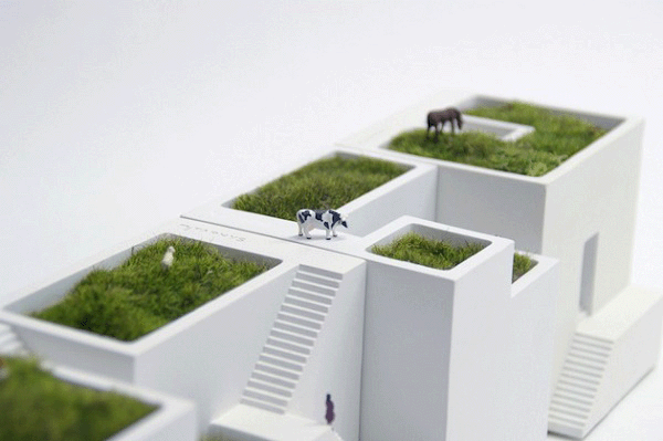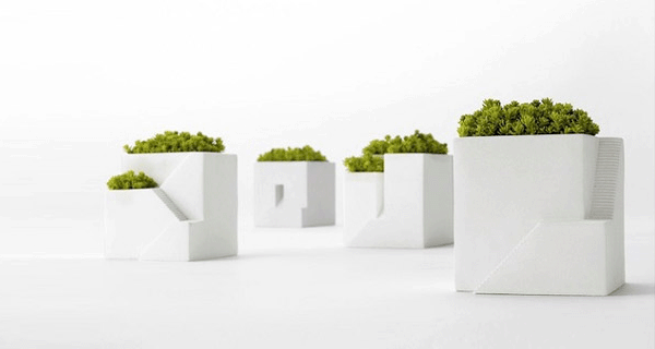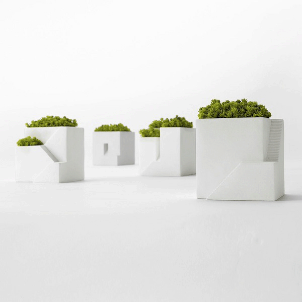 细腻柔软的苔藓和植物,如小型多肉植物,有四个变化:巷,广场,隧道和曲折,设计来自Metaphys公司,每一个独栋洋房绿植盆(Ienami Plant Pot)都是一个精致的缩微景观,种上花草之后,视觉效果还是非常棒的。尤其是,如果能再配上一些动物模型,比如说一头奶牛、一条狗狗之类,立马就显得生气十足了。