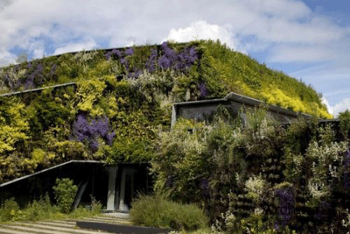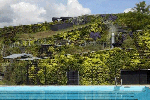 荷兰阿姆斯特丹的‘De Baarsjes’社区是名符其实的社会大熔炉,这里聚集了来自世界129个不同国家和地区的人民。当局为了提高这里生活质量便在这里建立了一个集游泳池,水疗,健身健美,桑拿,聚会中心,咖啡厅,快餐店一体的综合建筑,由于这个建筑位于公园中,因此建筑师让建筑披上了厚厚的绿色植被外衣。