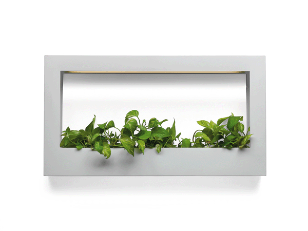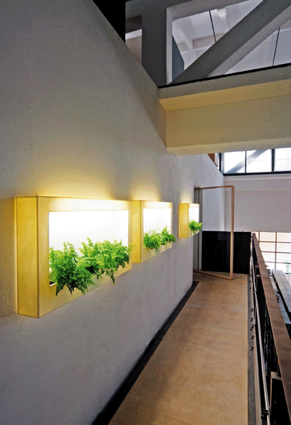 如果觉得在寸土寸金的现代住宅当中很难放下传统的绿色植物,把它们都做到墙面上去或许是个不错的方式,设计师Fabio Bortolani就这么做了,类似相框的小方块当中种上绿植,上面加上LED灯,灯光既帮助绿色植物成长,同时也起到了环境照明的效果,也让整面墙有了景观的味道,是不是一举多得呢。