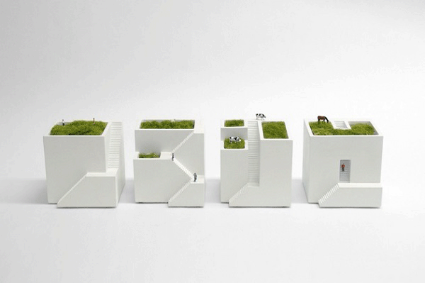 Metaphys:Ienami植物盆栽 细腻柔软的苔藓和植物,如小型多肉植物,有四个变化:巷,广场,隧道和曲折,设计来自 Metaphys公司,每一个独栋洋房绿植盆(Ienami Plant Pot)都是一个精致的缩微景观,种上花草之后,视觉效果还是非常棒的。尤其是,如果能再配上一些动物模型,比如说一头奶牛、一条狗狗之类,立马就显得生气十足了。 |