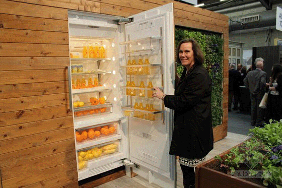 到Miele公司在这个周末的建筑文摘家居设计展的展台参观的人看到了一个纯绿色厨房,包括一个岛式木质餐桌和一个立式吧台。它是由新泽西州的EcoWalls所设计,它不仅加入了基本的生活必须元素,也展示了人们可以在日常生活的屋子中加入多少绿植。这个由植物组成的墙壁和草本植物花园也完美的体现了Miele最新节能系列:节能冰箱、烤箱和酒柜。