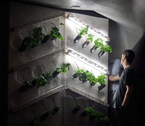 建筑系学生Peter Gudonis和Carly Dean,接受了康奈尔大学理事会的艺术拨款,和Nicholas Cassab-Gheta一起设计和安装了这面墙,这概念来源于学生对于都市农业和建筑相结合方面的兴趣,包括绿色空间、绿色屋顶、外墙、扩大的表面、空气和其他生产性水培技术。