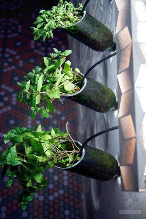 水培瓶壁使用所有本地采购和再生材料,并且融合了家具设计、当前的创新技术与都市农业。瓶子花园提供了一个微观的越来越多人支持的将结合农业高产系统纳入城市和建筑的观点,同时满足了学生酒吧美观和美食的需求。
