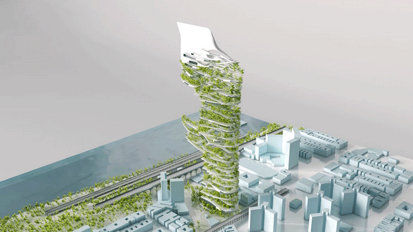 大厦如同一座绿肺,有着自然光照和通风,可抵御不利的气候条件,同时还能够捕捉到可再生的能源。