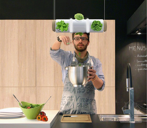 景观设计师Thibaut Delefortrie和工业设计师Eugénie Pfeil将他们的创意能力集中起来,将花园带到了厨房中。Klorofyll,这是一种看似普通的灯管,但它可以被悬挂在厨房中,并在上面种植香草。 Klorofyll兼具功能性与装饰性,它是自己动手种植潮流的产物,即使这上面只有非常少的香草,但它也可以反映一个人的个人品味与兴趣。每一个人都可以自己决定如何使用这种产品,来符合他自己的品味。Klorofyll的360度可旋转中轴有六处可拆卸的植物容器,两个LED光环将会提供照明,它的电线同样也是悬挂它们的绳索。作为一种悬吊灯,它为厨房带来了充足的光线。如果环境光线对植物的健康生长来说不够充足,Klorofyll将会通过LED灯来模拟光合作用。Klorofyll的功能是如此强大,以至于它也可以被装饰在卧室中。将多个模块装到墙上将会组成一面垂直的花园墙。但是它的灵活度远远不止于此,一切只等用户自己来发掘。