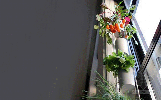 这是由美国纽约布鲁克林区的Britta Riley设计的Windowfarm窗户农场垂直花园。这个模块式的花盆系统可以悬挂在窗户上,让植物享受到生长所需的自然光线。高楼公寓缺少种植空间,人们可以利用这款设计来最大化室内绿色空间和在厨房里添加香料花园。窗户垂直花园以水培系统连接所有的独立花盆:营养液通过小型水泵提升到最高处的花盆,然后通过重力由高向低层层渗透,为每层植物提供营养。多余的营养液最终会聚集在每一排花园底部的水槽里并被重新利用。如果你愿意花费119.95美元 (约736.05元人名币)或更多的话,窗户垂直花园可以根据你希望拥有的种植空间提供单排、双排或多排系统。