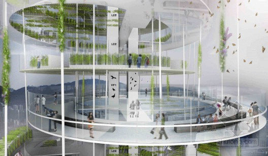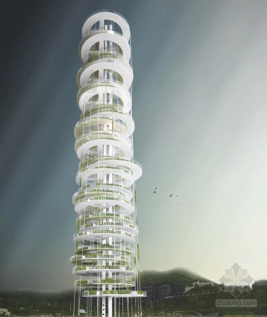 此项目位于大埔区,是香港第二大行政区域,建筑师们用一个垂直网络式的结构取代了原始的模范式结构,这样的设计就可以使这个地区的农业有序且呈网络型发展。自从2000年以来,中国的城市化进程不断加快,并以平均每年10%的速度发展,虽然中国的农业产量是世界上最大的,但是,只有陆地面积的15%可以进行种植。所以由此可以看出发展垂直网络农业是十分有必要的。中国的空间是有限的,农业问题在中国整个历史发展中,一直是一个非常重要的问题,曾经也经过粮食短缺的困窘。而生态高效的农田已经随着时间的推移,扩展到了西部和北部,并已经取得了部分成功,与东部的土地相比,这边的土地通常是处于寒冷且干燥的环境中。19世纪50年代意外,这样的农业土地也被工业占地需求和城市化进程扩展的挤压的所剩无几。我们的设计灵感来自于中国水稻农业的惊人转变,这种水稻农业是将土地拉伸成梯田形状的生产结构,这种结构有利于作物采光的同时,还具有抗药性的特质。建筑师们建议将波纹板和灯结构系统纳入设计中,以便于配合金属材料的回收。这一187.50米的生态农业结构将吸引全世界的游客,并将成为新的教育和农业研究基地。