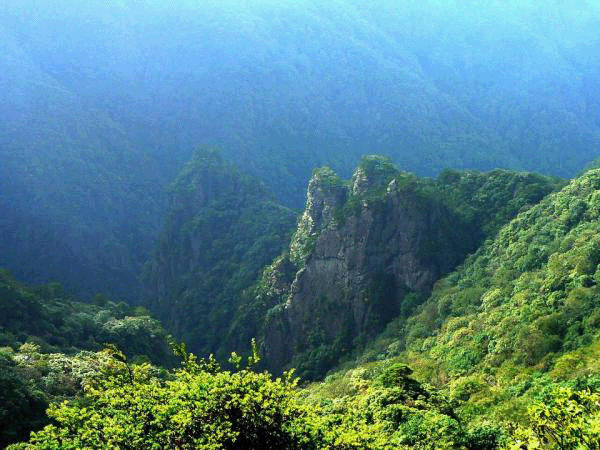 原始洪荒是梵净山的景观特征,全境山势雄伟、层峦叠嶂,溪流纵横、飞瀑悬泻。其标志性景点有:红云金顶、月镜山、万米睡佛、蘑菇石、万卷经书、九龙池、凤凰山等。梵净山乃“武陵正源,名山之宗”,是避暑名山。这里夏无酷暑,冬无严寒,空气不干燥,四季无风沙,年平均气温15.3℃。其中,最热的七月下旬,平均气温为24℃,最冷的一月上旬,平均气温是4.6℃。