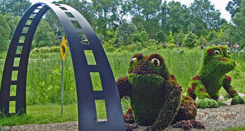 注意:青蛙过马路啦。在舍布鲁克有专门的通道保障两栖动物安全穿过。这个立体花坛就是为了致敬这种保护生物多样性的举措。