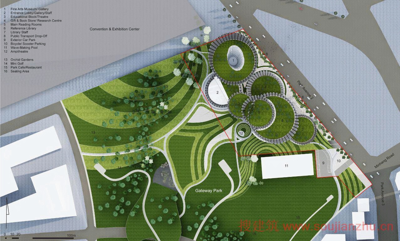 台中市文化中心的设计与台中市公园相整合,包括文化、教育、旅游、环境保护、低碳、能源的节约和可持续发展。