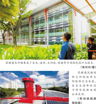零碳建筑自然少不了太阳能这个主角。“大楼已实现电能的自收自支。楼顶的太阳能板将太阳能转化为电能,在发电高峰时还可将电能输送到公共电网,在用电高峰时,大楼可从公共电网购电。从全年情况看,发电量略有结余。”新加坡建设局的工作人员告诉笔者,新加坡电价为1元/度,是为数不多可以达到光伏发电的成本与传统的电价持平的国家,这成为新加坡光伏发电的最大优势。不过,“仅从电价来看,光伏发电的设备投入需要20年后能够收回。”