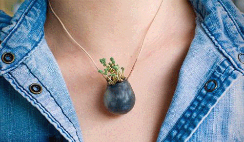 想不想把盆栽带在身上呢?如今这个梦想可以实现了。据英国《每日邮报》1月13日报道,现居美国亚特兰大的设计师科琳?乔丹 (Colleen Jordan),以“可以佩戴的植物”为理念,将种有植物的花盆制作成项链和戒指等饰物,这种充满创意又格调清新的“花盆首饰”一经面世便受到众多女性的青睐。
