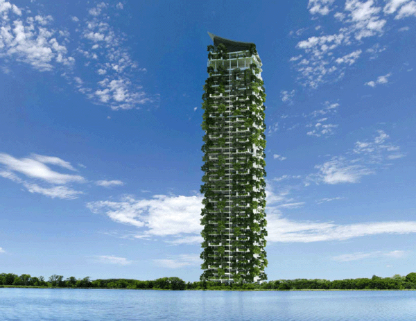 为了节约用水,各园将有一个内置的灌溉系统,这意味着花园是无需不间断维护的。液体会在淋浴和水槽被混合前被收集起来,用于滴灌和浴室冲水。定位在塔的屋顶太阳能电池板将电源公共设施,如公共照明、电梯和灰水回收系统。产生的任何多余的能量将被卖回给电网。回收的固体废物例如玻璃、纸张和塑料,从每层楼的垃圾房中分离出来,并出售给有关当局。