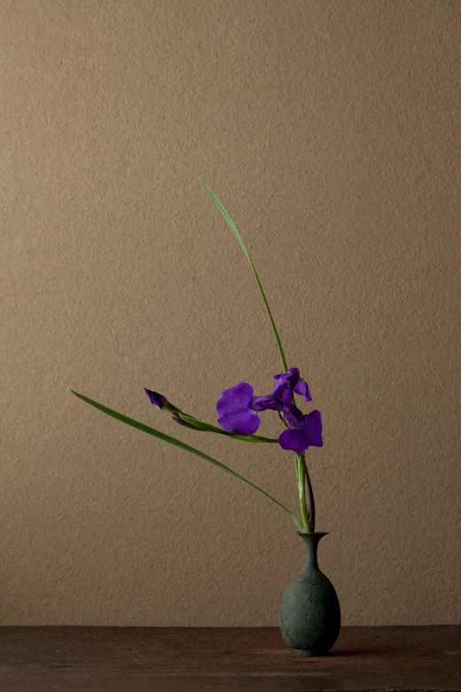 日本花艺大师Kawase Toshiro(川瀨敏郎),“自然野趣流”的代表人物,他喜欢用一些古老、质朴、布满历史痕迹的器皿当做花器,依据时节到山野里找最当令的花叶,融入花器中。
