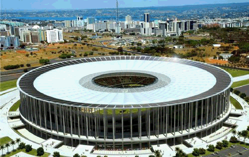 在建筑方面,巴西很少有能与首都巴西利亚相比的城市,壮观的国家体育场是2014巴西世界杯中第二大的球场,能容纳68009名观众。国家体育场会举办了2013联合会杯开幕式,和2014巴西世界杯包括四分之一决赛在内的七场比赛。