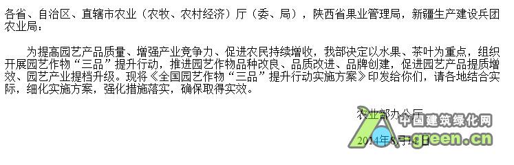 《全国园艺作物“三品”提升行动实施方案》