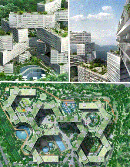 “交织住宅复合体”方案由大都会建筑事务所的欧雷-斯科伦所设计,它不同于典型的新加坡超高层住宅建筑。这种“交织住宅复合体”是一种蜂窝式的结构,共包括31个积木状6层分体结构。