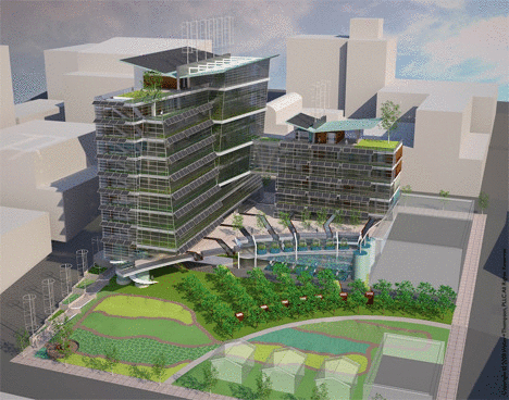 在“推进达拉斯”方案中,整栋建筑就好似一座覆盖植被的小山,内部包括住宅公寓、咖啡馆、体育馆、日常护理场所以及其它公共空间。这座“小山”似的建筑其实就是一个集农业生产、能源自给、生活居住等多种功能为一体的综合城市社区。达拉斯市政官员对这个方案倍感兴趣,并最终采纳了它。“推进达拉斯”模式的建筑将于2011年左右开始动工兴建。