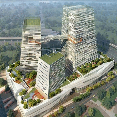 “城市森林塔”由中国MAD建筑事务所设计,它看起来就像是一座城市山峰。“城市森林塔”有70多层,每一层都呈现出形态不一的波浪形,所有窗户均是落地窗。这种奇怪的造型可以使得其中的花园天井照射到足够的太阳光线。这种设计理念既考虑到了城市的特点,同时又拥有了原野的气息。
