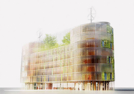 这个庞大的城市农场是为巴黎而设计。它空幻、朦胧的外表似乎是为了掩饰建筑物内部真正的农业生产。
