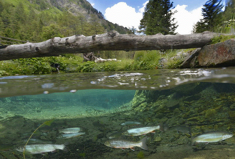 并且每当春季冰雪融化后,这个国家公园的部分陆地都会被雪水淹没,形成独特景观。阿尔姆湖中游过的Minnow鱼.奥地利居民已经适应这种冰雪融化的景色。