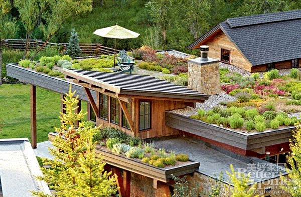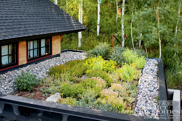 建筑承包商Daniel Jessen在修建自己在科罗拉多Steamboat Springs的住宅时,想把这次“筑巢”工程完成得与众不同些。经过 一番设计以及一系列的实施,最终亮点落在了他家的屋顶上。那可 以称得上是一个“活的彩色屋顶”,所有平顶部分铺满了植物和石 子,这块抬升起来的绿地像嵌在半岛上花开遍野的高山草甸,与房 子周围的绿色山坡连接成片,伸向远方。Daniel的屋顶绿地在一段 时间的养护之后,形成了独立的生态循环系统,在为家庭节约能源 方面做出了巨大的贡献。