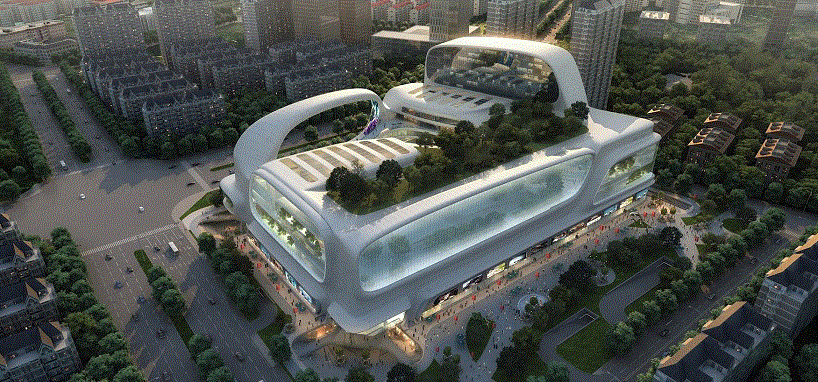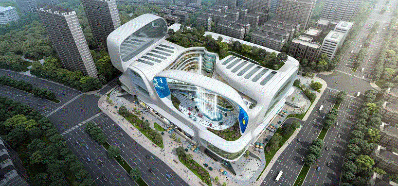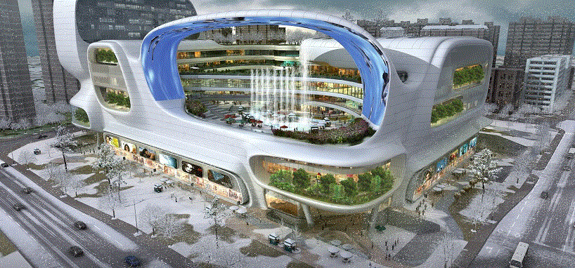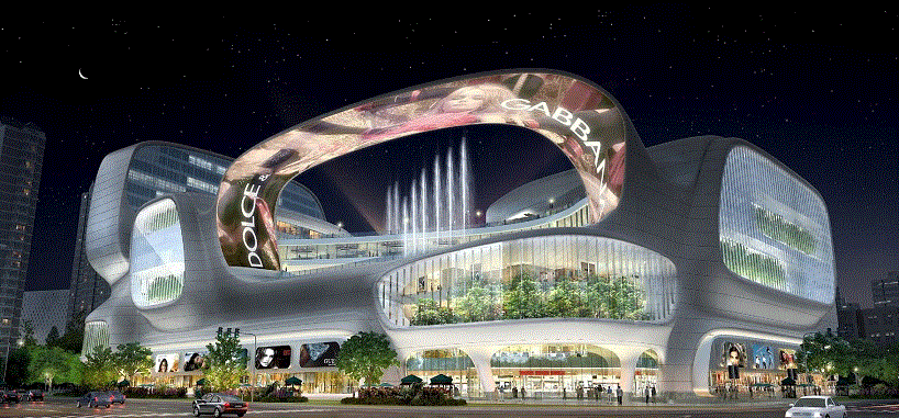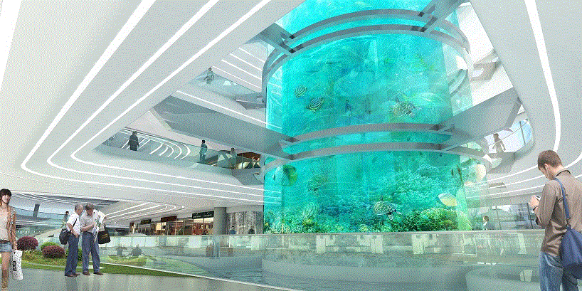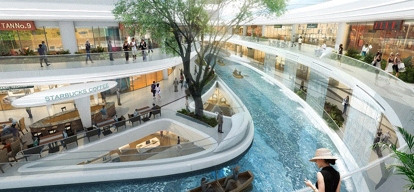 第五层的喷泉广场、运河和垂直水族馆为这座综合体引入了水元素,也是生命的象征。这将是中国最大的同类项目。游客可以通过缆车沿着运河蜿蜒而行,或者搭乘玻璃电梯欣赏水族馆美景。一旦建成,这座购物中心将成为这座城市的强大助力,具有里程碑的意义。