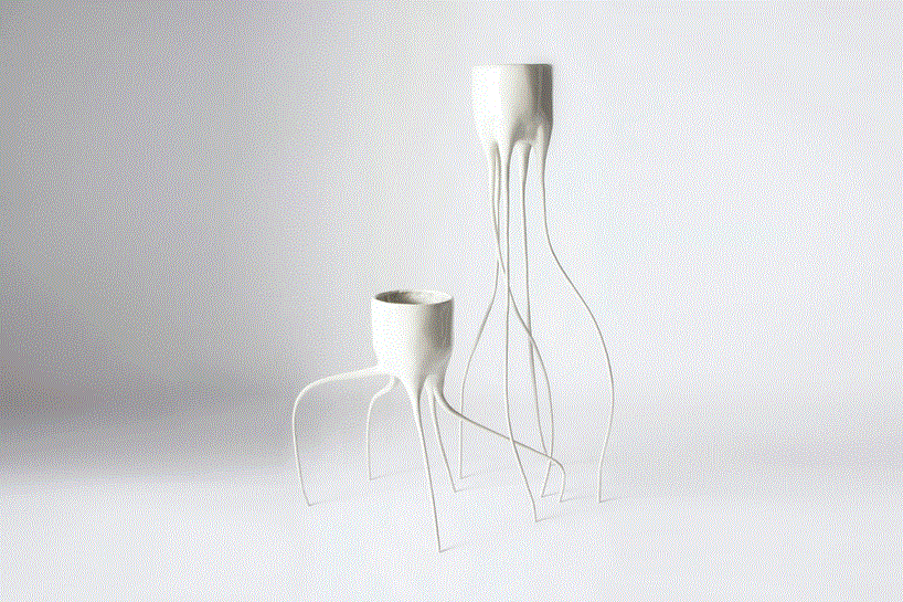 该款设计材料采用了化学的环氧基树脂粘土。这组设计由两种不同的版本构成:一是“magnifica”,一款较高、形态优雅的版本,另一款是相对较矮的“fugiens”。两个版本看似脆弱的“腿”都由埋置钢筋制作而成。这些“腿”由手工弯折,以形成延伸至地面的器官,最后用工业用化学环氧基树脂粘土塑模完成。设计师这种处理方法展示了看似完全不可能达到的结构,因为坚固的组合体结构由下部看似纤弱其实出人意料的牢固稳定的“腿”支撑。该系列在乌特勒支的concept store eindhoven可以购买或参观,您也可以在vechtclub XL.直接联系设计师工作室。
