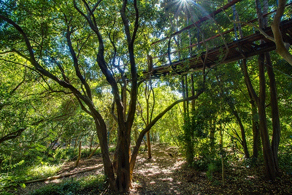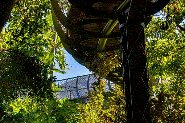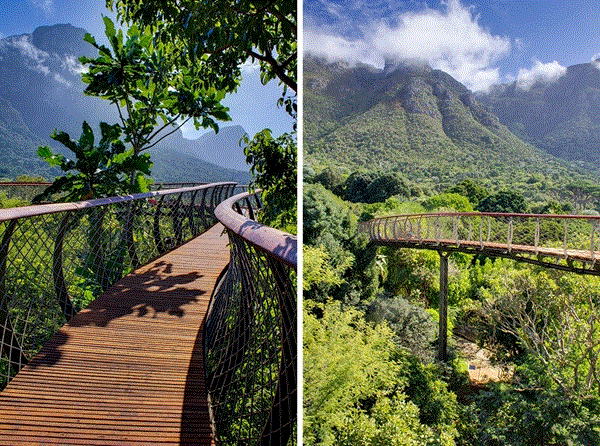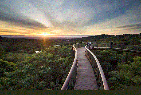 康斯坦博西植物园内被亲切地称为“非洲树蛇”或“树冠走廊”的森林桥梁现面向公众开放,游客在这里可以欣赏到从森林地面到树冠高度的非凡而独特的景观。这条长长的天桥本身也成了吸引游客的一大景点。如不精心设计和架设,这种大型结构在自然环境中将会十分突兀,因此建筑师尽量将这座蛇形天桥隐藏在周围景观中。