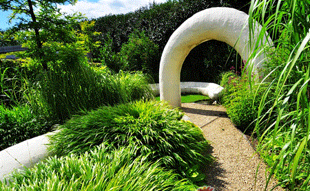 观赏草结构上直立、风格豪放,与垂直灌木有相似处,而观赏草在质感上柔和、飘动,可以软化灌木的直硬感。