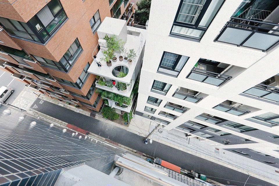 (TOKYO’S VERTICAL THRESHOLDS #2)BY 西泽立卫 RYUE NISHIZAWA。相比妹岛和世(kazuyo sejima)芝浦住宅(shibaura house)的公共空间概念,下面介绍的西泽立卫设计的这座私人住宅则涉及到与城市文脉相反的领域。首先,这座住宅位于城市中一块狭窄的用地上,在选址上回应了西泽立卫的“业务合作伙伴”客户想要生活在城市中心的愿望。这里靠近他们办公以及管理全球业务的地点。