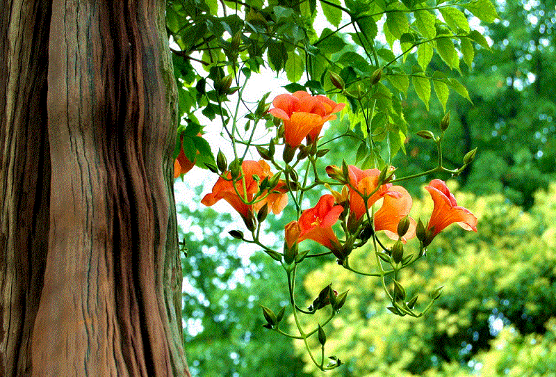 园林用途: 凌霄生性强健,枝繁叶茂,是廊架绿化的上好植物。