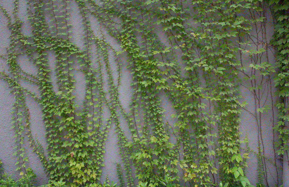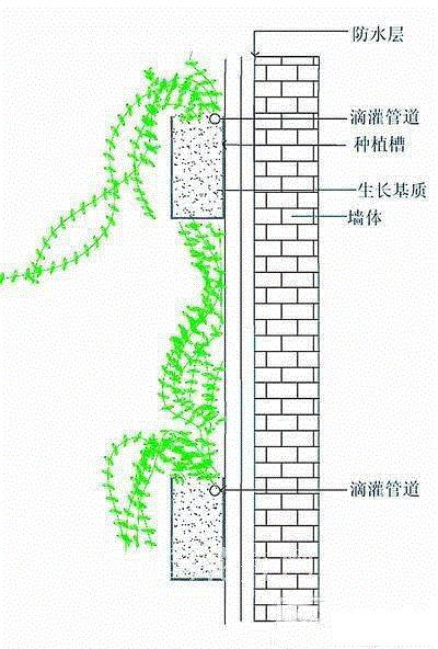 用于垂直绿化的植物具有极强的生命力、易繁殖蔓延、环境适应能力强;对土壤、水、肥等生存环境要求不高且基本不需要整形修剪,墙体绿化造价低、养护方便。
