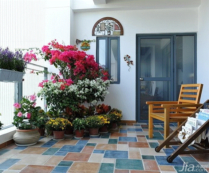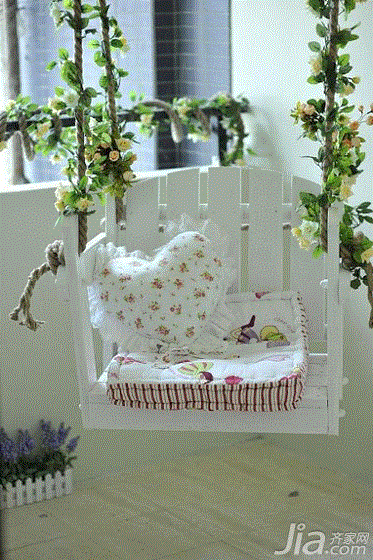 半封闭式的阳台,配上用花藤残绕的秋千,放上一个坐垫,不仅舒适美观,还节省了空间。