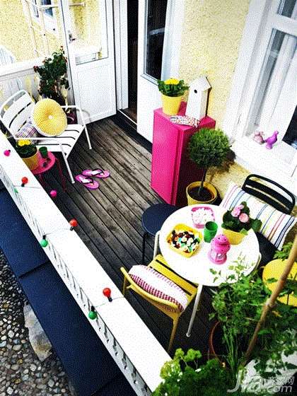 春夏的明媚,除了花朵可以给予,选择拥有艳丽颜色的户外家品,同样是明智之举。柠檬黄、荧光粉,这些能让眼前一亮的颜色,都纷纷跻身于凳子、椅子、储物柜、以及各种家居小件上,让普通的户外阳台顷刻活力四射。