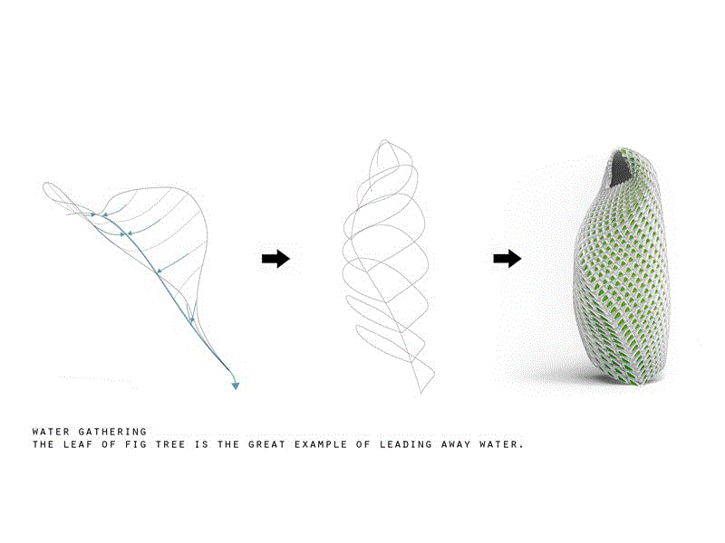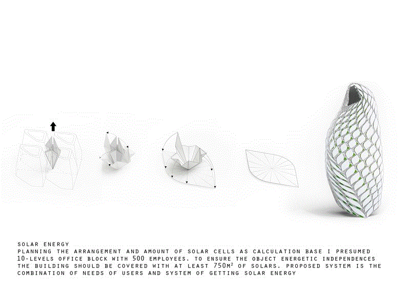 “我感兴趣的题目是一切存在的或即将建造的,腐朽的,不能适应城市发展的建筑外墙。就像自然界一切由大量细胞组成的生物一样,为了确保其准确性,我决定也做一个整体的模块化系统,这样便可以去改造那些工业化的建筑,黯淡的摩天大楼,办公大楼甚至一些典型的绿色建筑的外墙。该系统还为用在建筑的建造上提供了可能。在这个项目的每个过程中,我一直从大自然中寻找着灵感,因为在我看来大自然才是最优化及周围环境资源使用的主导。”