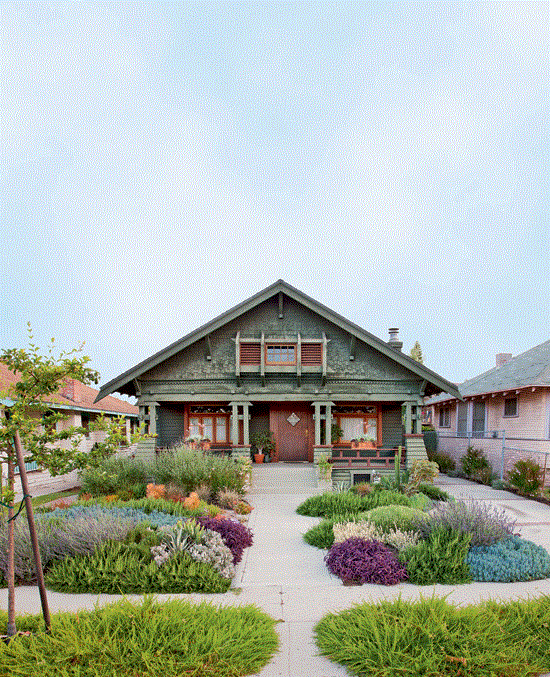 Steven和Marina居住在洛杉矶市的中心社区,这是一个拥有 2000栋平房的街区,一般情况下,这里的居民会在前院种草美化环境,但Steven和Marina觉得草的需水量很大,不适合洛杉矶干旱的气候条件。他们觉得应该在自己家前院那栋建于1909年的精致小屋门前种上低矮耐旱的植物,这样既能达到绿化环境的初衷,又迎合当地的气候条件。洛杉矶当局同意了他们的想法,并对草坪改种节水植物的计划提供每平方英尺(约合每0.09平方米)一美元的财政补贴。Steven家的前院面积有740平方英尺(约合69平方米),上面长着些没精打采的狗牙根草和其他杂草,补贴的钱足以用来除掉这些草。